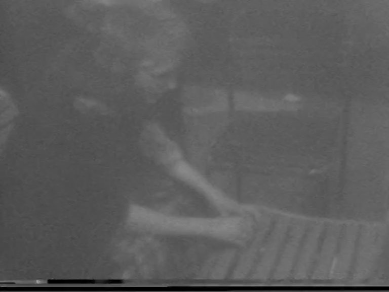 A black-and-white video revealing three different scenes: a room with one man and his chairs; a direct-animation amateur collage; a school skit about kings and queens. The video plays with editing as a magic trick to reveal people and objects disappearing from a room, then a direct animation collage featuring magazine cutouts of a pair of jeans, a woman in a bikini and a military tank. The final and predominant part of the video shows a school play, featuring kings, messengers and a dramatic kidnapping at the centre of the drama.