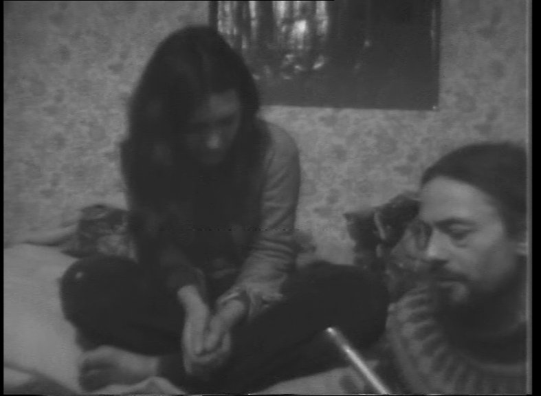 The black-and-white video is an interview between John ‘Hoppy’ Hopkins and Sue Hall with the family of Annette Collins who were evicted from a squat in Guilden Road.