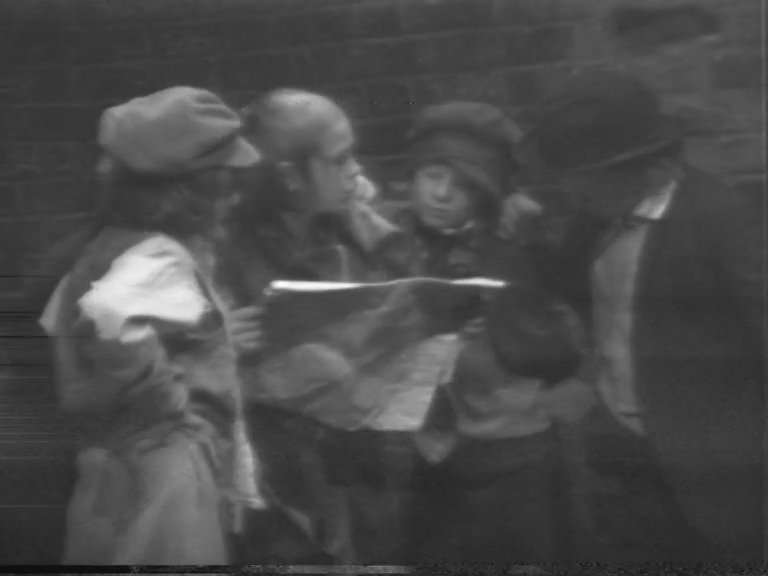 Black and White footage of Whitechapel’s Half Moon Theatre 1973 production of "Fall in and Follow Me", act two. The politically charged stage production follows a group of striking white working class children, inspired by the East London Workers Strike of 1911.There is particular focus on the oppressive schooling system that attempts to indoctrinate children into the nationalistic values of the empire, as well as the personal economic struggles of working-class families. Written by Bethnal Green local Billy Colvill and docker, Dave Marson, the play was performed by Bethnal Green school children and adult actors from Half Moon Theatre.