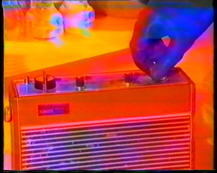 Pout: Issue Three is the third and final iteration of a community-produced colour video magazine documenting lesbian and gay life in Britain through interviews, performance, satire, and documentary fragments. Produced by a collective of artists and activists from Outrage, the POUT tapes include direct-to-camera vignettes on sexuality, safe sex and relationships. Here, we see a narrator with a mohawk, sitting in an armchair surrounded by videotapes. They guide us through the multiple skits that follow: a camp, sexy performance in a supermarket with lard used as a suggestive lubricating prop; a musical about fisting; a raunchy performance of a kitsch(en) sink plumber; interventions on ads and a street-interview-style bingo in Soho, London. The video focuses on safe sex while gesturing towards the Act Up protests in London in the early 1990s and Section 28 which banned the promotion of homosexuality in schools in 1988.