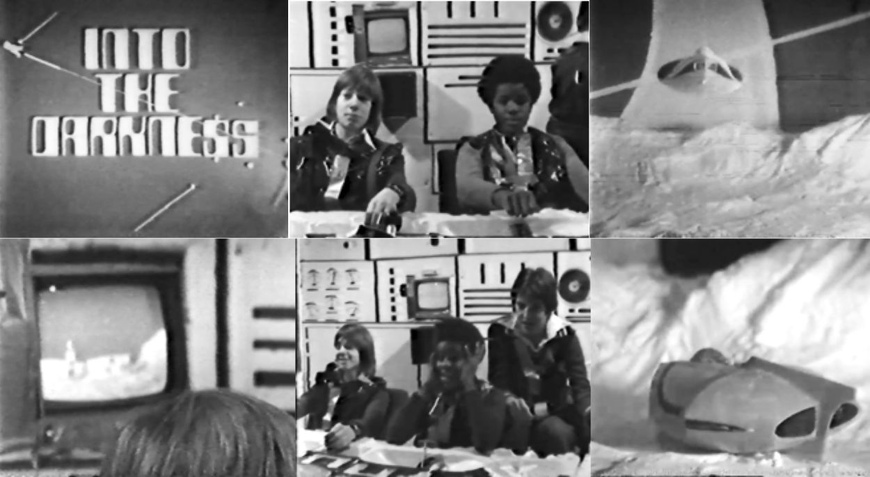 A still from a video made by young people with the Walworth & Aylesbury Community Arts Trust. Into the Darkness is a space adventure featuring three children who explore a distant planet in a spaceship, quirky science-fiction music accompanies the story. The following video contains an interview with participants in the space adventure with questions put forward by Tony Dowmunt.